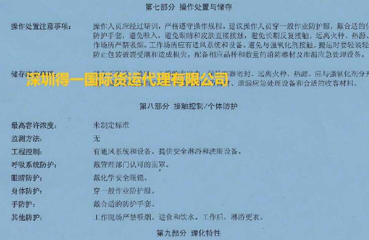 四,其他部份就是關(guān)于化工品的安全信息,包括了法律法規(guī),運輸,廢棄物如何處理等等。