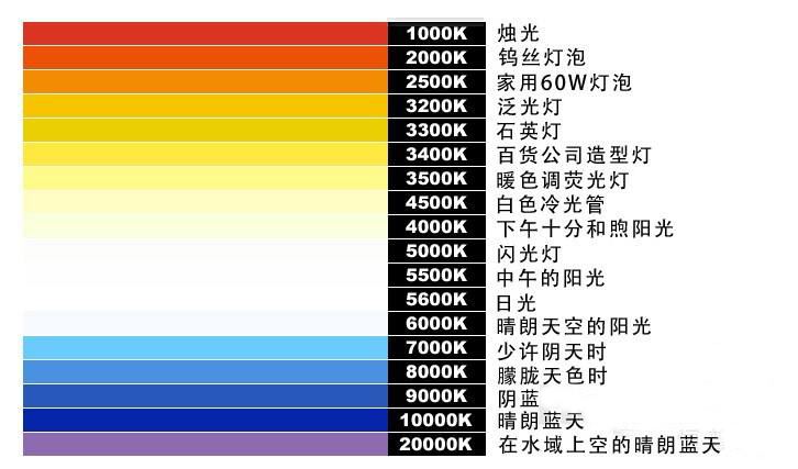 色溫:色溫是指光源發(fā)射的顏色與黑體在某一溫度下輻射的光色相同時(shí),黑體的溫度稱為該光源的色溫,一般以開氏k為單位。比如3200k和5600k等。色溫高,光線的顏色偏冷。色溫低,光線的顏色偏暖。色溫適中時(shí),光線接近于白色。自然界正常日照下,光線的色溫一般都要高于人工燈具的色溫。通常情況下,陽(yáng)光的色溫為5600k左右,而演播室及演出用燈具的色溫都在3200k左右(熱光源)。不過(guò)近來(lái)電視演播室興起的冷光源布光,是對(duì)傳統(tǒng)光源的變革。冷光源的色溫高,耗能低,發(fā)熱小,在進(jìn)行室內(nèi)外攝相時(shí),色溫轉(zhuǎn)換簡(jiǎn)單,畫面自然,當(dāng)然冷光源對(duì)調(diào)光臺(tái)的性能要求也要高些。