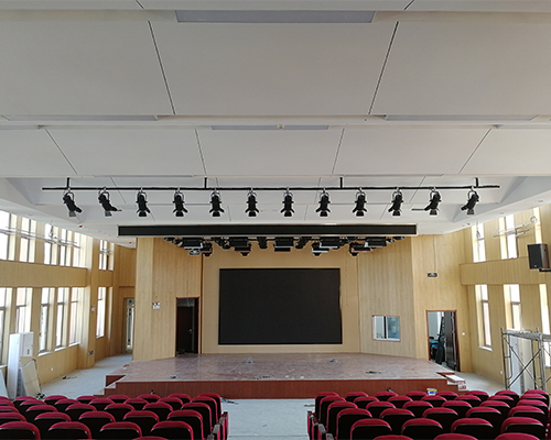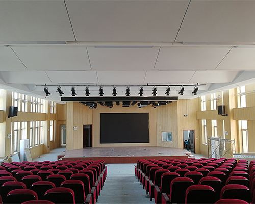階梯教室主要用于會(huì)議報(bào)告和演出,燈光布置選用盈立萊JTL 6*55W三基色柔光燈和3*54顆LED全彩帕燈,并采用LED COB燈珠的聚光燈作為面光。