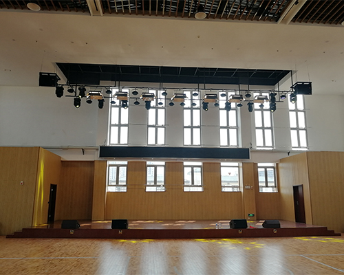 風(fēng)雨操場(chǎng)除了用于平時(shí)的體育課教學(xué),還用以承辦學(xué)校運(yùn)動(dòng)會(huì)演出等活動(dòng),因此配置了盈立萊JTL光束燈和3*54顆染色帕燈,營(yíng)造舞臺(tái)演出氛圍。