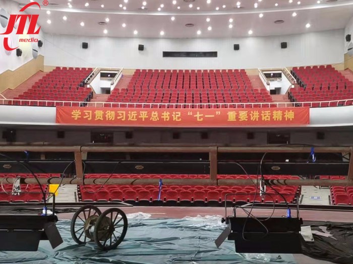 本次項(xiàng)目主要針對金陵石化劇場燈光設(shè)備的改造。由于石化劇場年代已久,照明設(shè)備陳舊,燈光亮度明顯不足,不能滿足日常會議報(bào)告的拍攝要求,因此勁騰燈光工程部選用了靜音型LED三基色柔光燈及200W調(diào)焦成像燈進(jìn)行燈光改造。