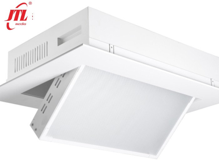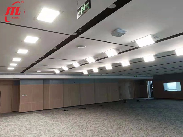 近期,勁騰有幸承接了南京報業(yè)發(fā)布廳燈光照明系統(tǒng)工程。發(fā)布廳要求燈光顯色性好、色溫準(zhǔn)確,使用過程中安全穩(wěn)定,更重要的是光線輸出均勻柔和,拍攝的視頻畫面清晰、干凈、有層次感。燈光師根據(jù)場地面積及現(xiàn)場要求,設(shè)計一道頂光,兩道面光,分別選用200W嵌入式LED平板燈和電動可調(diào)角度LED平板柔光燈。