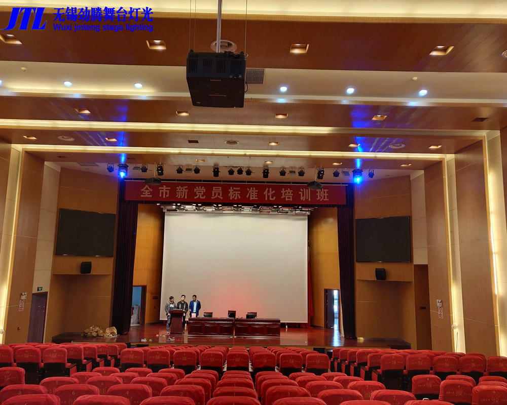 中共張家港市委黨校是張家港市培訓(xùn)黨政領(lǐng)導(dǎo)干部和中青年干部的重要陣地。占地40畝,建筑面積12500平方米,是一所現(xiàn)代化、網(wǎng)絡(luò)化、生態(tài)化的新型校園。黨校報(bào)告廳原有的報(bào)告廳面光燈、圖案燈更換為勁騰JTL面光燈、帕燈和三合一圖案燈。面光燈的作用是滿足日常的照明需要,三合一圖案燈可以打出多種圖案效果,集光束染色圖案一體,功能多樣,可滿足舞臺(tái)演出的需要。