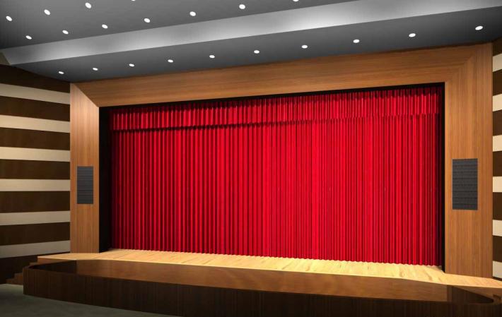 大幕有提升式、對開式、提升對開式、串疊式、蝴蝶幕等形式。提升大幕能升降運動;對開式大幕能水平開合;提升對開式大幕能同時完成幕布的升降,對開兩維空間運動;串疊式大幕由多臺電機控制,每臺抽拉電機控制一道鋼絲繩抽拉點,鋼絲繩豎直抽拉幕布,幕布層疊收縮,故稱“串疊式”;
